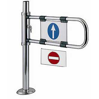 Высококачественные хромированные. В комплектацию включены: значки для поворотной рамки: проход разрешен, проход запрещен. Встречное направление блокировано, открывается при нажатии силой в 13 кг.