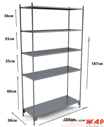 -Вместимость 80 3-х литровые банки -4 полки выдерживают до 250 кг -Оплата при доставке - простой и экономичный способ организовать хранение вещей в складских помещениях,отлично подходит для банок Размеры: Высота, мм: 1810 мм Ширина, мм: 1040 мм Глубина, мм: 375мм Количество полок: 5 Нагрузка на одну полку, кг: до 60 Максимальная нагрузка на стеллаж, кг: 240кг Выгоднее купить чем делать самому!